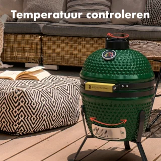 Dankzij het keramiek geniet je van gelijkmatige warmte en stabiele temperaturen. Schroei steaks knapperig aan de buitenkant terwijl het vlees van binnen sappig blijft. Wanneer je kiest voor langzame bereiding, behoudt de kamado de lage, constante warmte perfect — ideaal voor pulled pork en zacht gegaarde stukken. De meegeleverde thermometer en de verstelbare luchtroosters geven je controle over het vuur, zodat je altijd het gewenste resultaat bereikt.